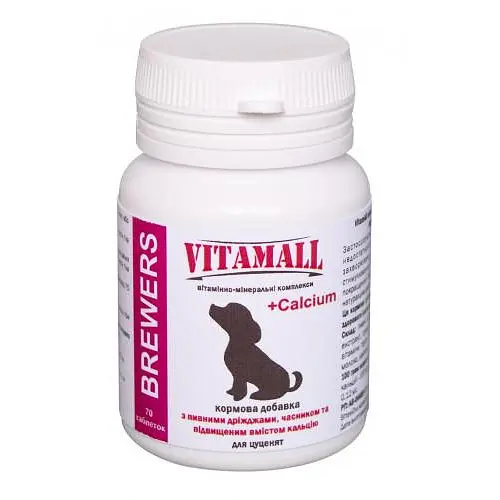 Кормова добавка VitamAll з пивними дріжджами, часником і кальцієм, для цуценят, 70 табл/70 г