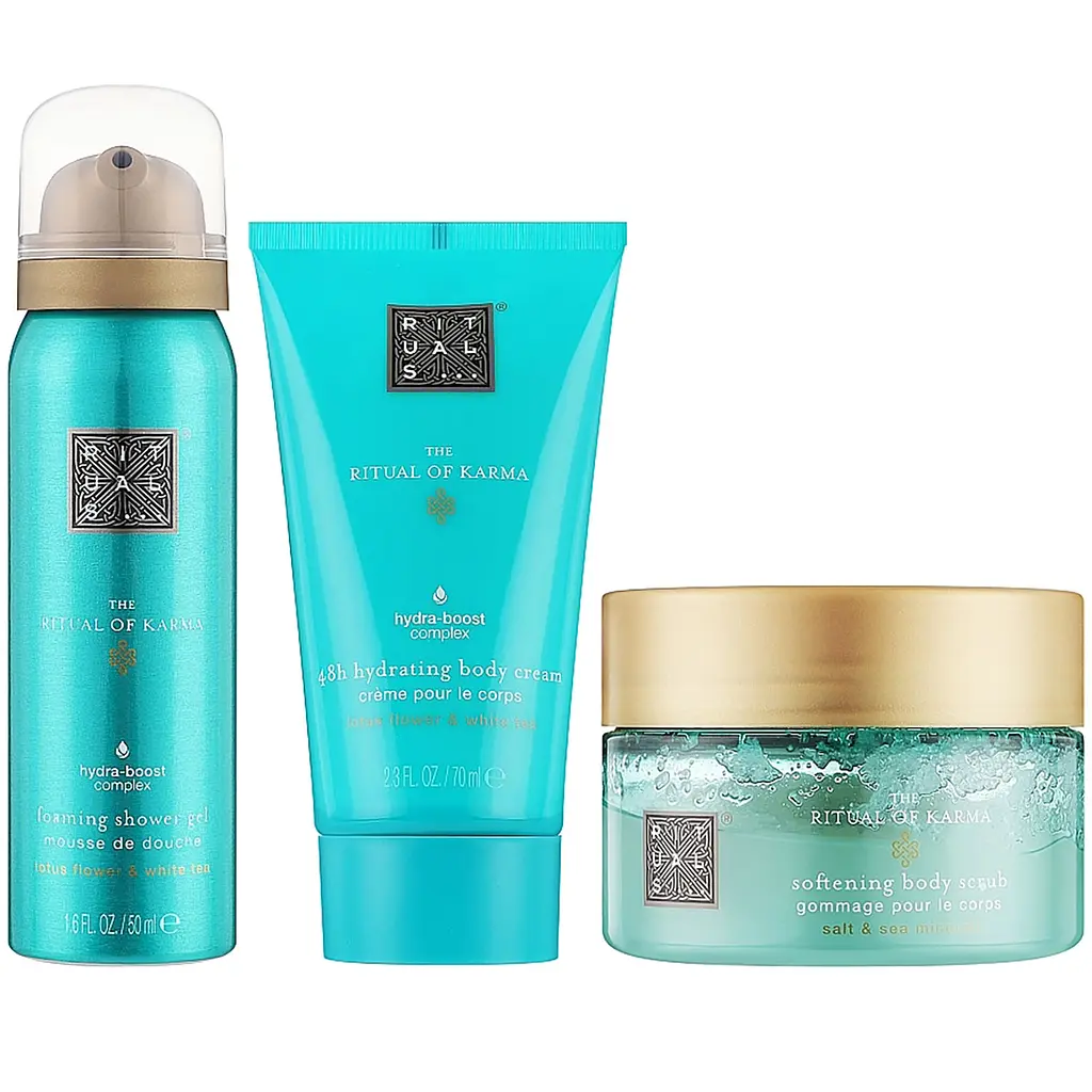 Набір Rituals The Ritual of Karma - це сет із 3 засобів для тіла, що належать до однієї лінійки. The Ritual of Karma - це наче райська атмосфера, яку ви можете принести у свою ванну кімнату із засобами для купання від Rituals.
