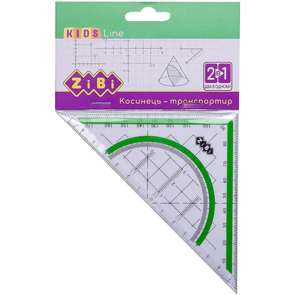 Косинець-транспортир 2 в 1 ZiBi Kids Line є ідеальним інструментом для школярів, полегшуючи вивчення геометрії та виконання точних геометричних завдань.