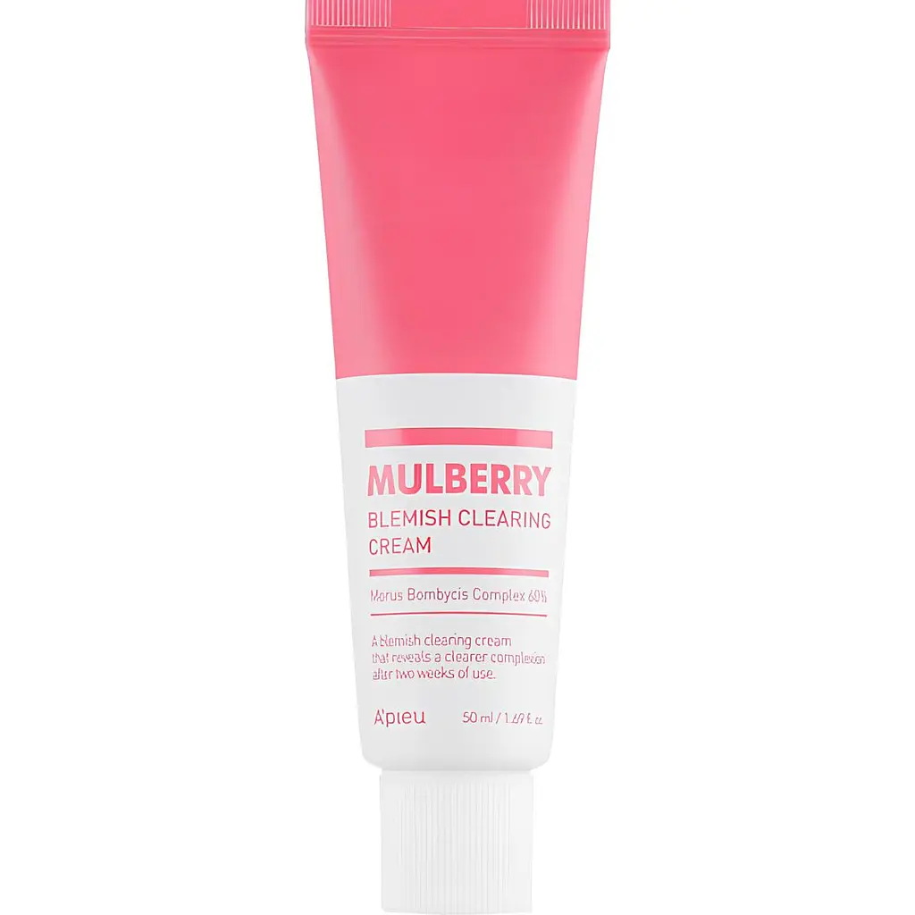 Крем для проблемної шкіри обличчя A'pieu Mulberry Blemish Clearing Cream зволожує, заспокоює і сприяє регенерації клітин проблемної шкіри. Він сприяє боротьбі з пігментацією, заспокоює подразнення і перешкоджає появі нових запалень.