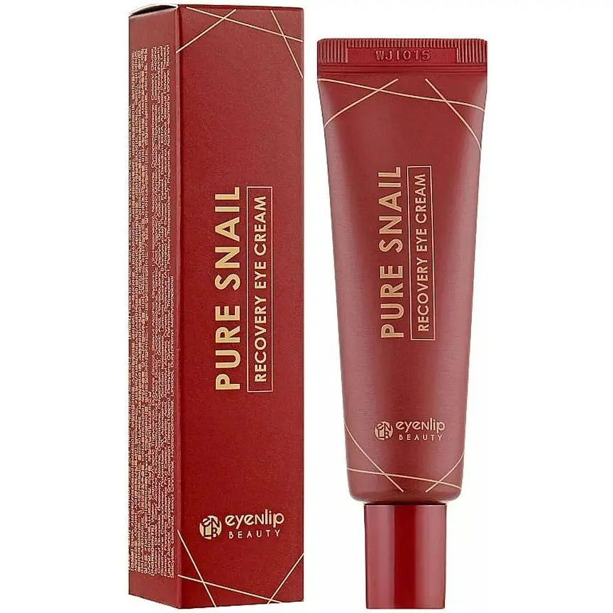 Відновлювальний крем для зони навколо очей Eyenlip Pure Snail з муцином равлика. Равликовий муцин має цілу низку корисних властивостей, які позитивно позначаються на стані шкіри, особливо на чутливих ділянках навколо очей. Крем допоможе усунути дрібні зморшки в куточках очей, дряблість і набряклість. Продукт швидко вбирається, не залишає жирної плівки та липкості. Також допомагає позбутися сухості та лущення, має значну омолоджувальну властивість, оскільки активізує процес вироблення колагену. Шкірний покрив стає пружним, еластичним, зникають висипання та почервоніння, вщухає свербіж та відчуття стягнутості шкіри. Антиоксидантний комплекс запобігає негативному впливу навколишнього середовища та фотостарінню, виводить з дерми вільні радикали. Завдяки регулярному використанню продукту ви помітите, що ваша шкіра розгладилася, стала більш еластичною та пружною, темні кола стали не такими насиченими, зникли лущення, запалення та висипання.