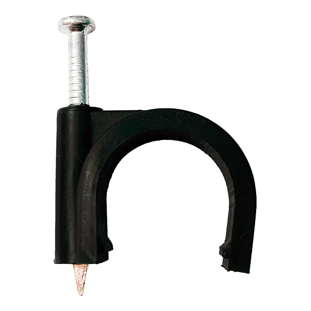 Кабельна скоба призначена для надійного кріплення проводів і кабелів до різних поверхонь. Оснащена вставним оцинкованим цвяхом, що забезпечує швидкий монтаж і надійну фіксацію. Підходить для круглих кабелів, допомагає акуратно організувати проводку та запобігає її провисанню.