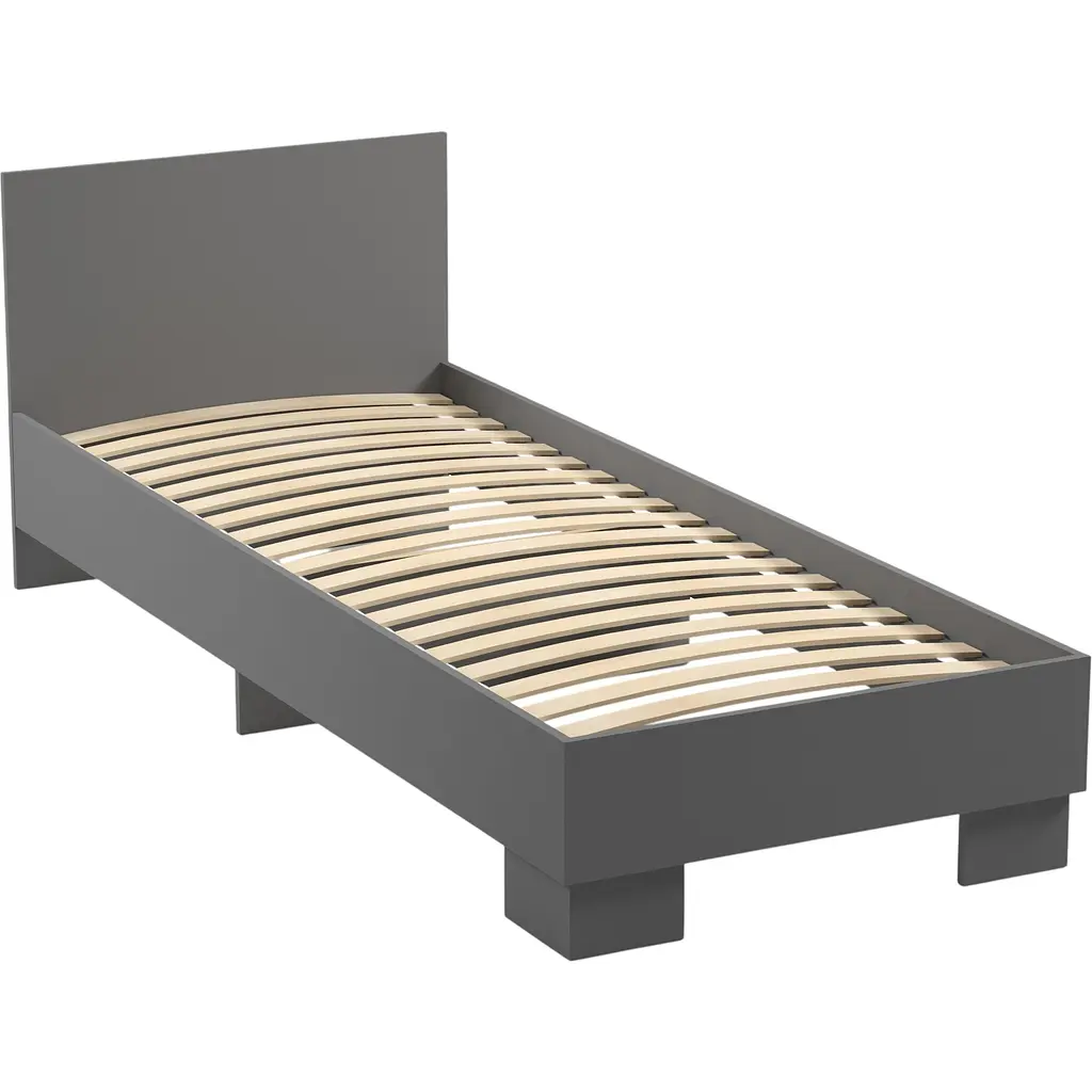 Односпальне ліжко Orange-Line Тіна 80 виконане в стилі мінімалізм з кольоровим рішенням сірий графіт. Модель призначена для спального місця розміром 80х200 см і має загальні габарити 203х83.5х73 см. Конструкція включає в себе узголів'я, що створює комфортну зону для відпочинку і читання. Узголів'я, підніжжя і бічні царги виконані з ДСП, створюючи цілісний зовнішній вигляд. Основа під матрац складається з дерев'яних ламелей, що забезпечують правильну вентиляцію і ортопедичну підтримку. Прямокутна форма і сірий нейтральний колір дозволяють легко вписати ліжко в різні інтер'єрні стилі. Стійкі ніжки гарантують надійну опору і стабільність конструкції. Відсутність додаткових ніш для зберігання робить модель компактною і придатною для невеликих приміщень.