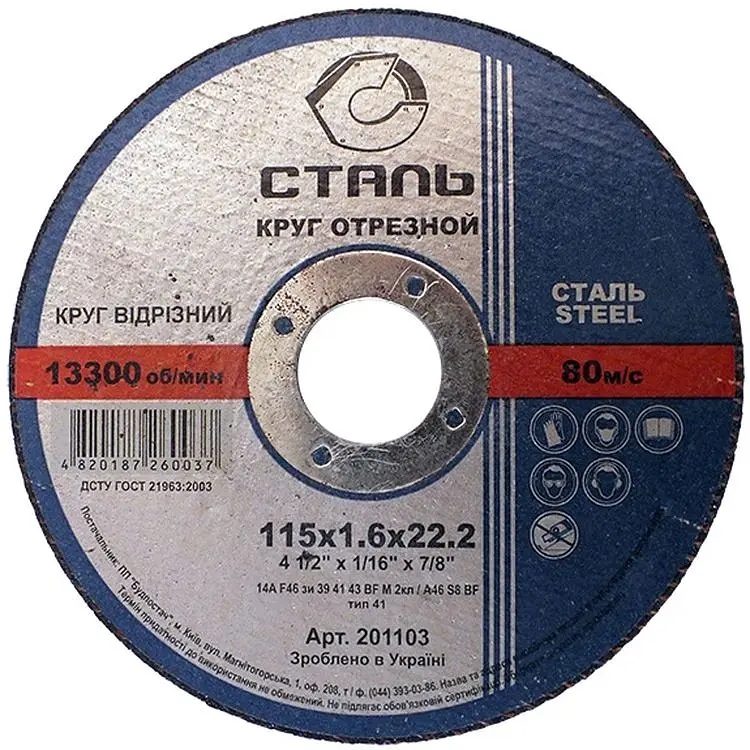Цей відрізний круг "Сталь" на $115$ мм — це надійний робочий інструмент для швидкого різання металу. Його товщина $1.6$ мм забезпечує чистий і доволі швидкий різ при мінімальній втраті матеріалу. З особистого досвіду, він чудово підходить для стандартних робіт по дому чи в гаражі, коли потрібно відрізати арматуру або нетовстий профіль, демонструючи добре співвідношення ціни та якості. Загалом, це простий і ефективний розхідник, який стабільно виконує свою роботу.