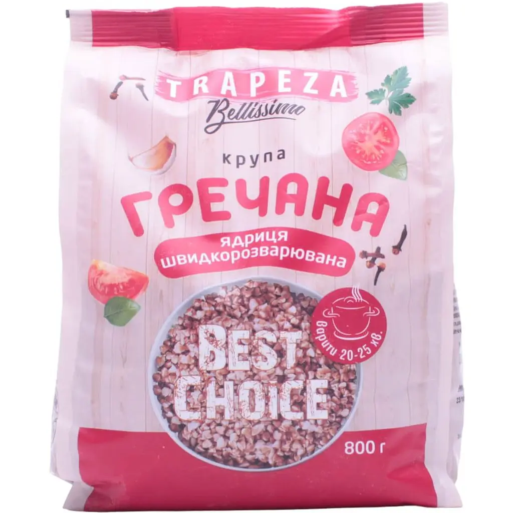 Купила гречану крупу "Trapeza" і була приємно вражена! Пакування зручне, а сама крупа виглядає якісною: зерна чисті, без домішок. Готувала її на гарнір, і вона дійсно швидко розварилася — всього за 10-15 хвилин! Гречка вийшла розсипчастою і смачною, з приємним ароматом. Дуже сподобалося, що її можна легко використовувати в різних стравах, а також для приготування салатів. Рекомендую всім, хто шукає якісну гречку з простим і швидким приготуванням. Обов'язково куплю ще!