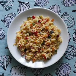 Це звичайний кускус, дрібний. Смакує просто з варений з маслом (хоча його і варити не потрібно, достатньо просто залити окропом та накрити кришкою на кілька хвилин), А я люблю кускус з овочами та м'ясом. Загалом дуже універсальний продукт, з якого готують запіканки, салати та гарніри