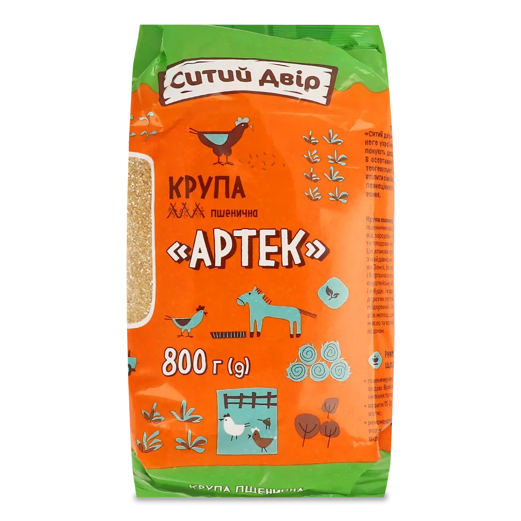 Крупа пшенична Ситий двір Артек - це частинки подрібненого зерна пшениці. Пшенична крупа має на організм загальнозміцнювальну дію, стимулює імунітет, а також є джерелом енергії для організму. Пшенична каша чудово підходить для вегетаріанців та прихильників дієтичного харчування. Пшенична крупа використовується для приготування пшеничної каші, запіканок, пудингів, битків, супів.
