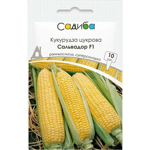 Кукурудза цукрова Сальвадор F1 - ранньостиглий (75 днів) гібрид кукурудзи з високим вмістом цукрів. Рослина заввишки 190 см, формує яскраві золотисто-жовті качани довжиною 25 см, діаметром 5 см, вагою 350 г, з крупними щільно розташованими зернинами (16-18 рядів). Відзначається стабільною врожайністю, відмінною пристосованістю до вирощування в тропічних умовах. Гібрид рекомендований для переробки на консервацію, зберігання в замороженому стані. У відвареному вигляді повністю зберігається ніжна текстура і солодкість зерна.