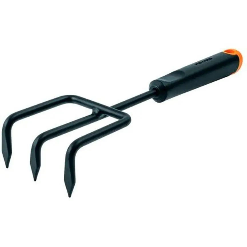 Культиватор имеет три стальных зубца, которые способны выдерживать высокие нагрузки. Они покрыты защитным слоем, предотвращающим коррозию. Дизайн изделия продуман до мелочей и дает возможность легче справляться с работой по саду. Рукоять инструмента комфортно ложится в руку и не выскальзывает. Для удобства хранения ручка имеет отверстие, за которое можно подвесить орудие. Культиватор Fiskars - это отличное пополнение вашего арсенала садовода.