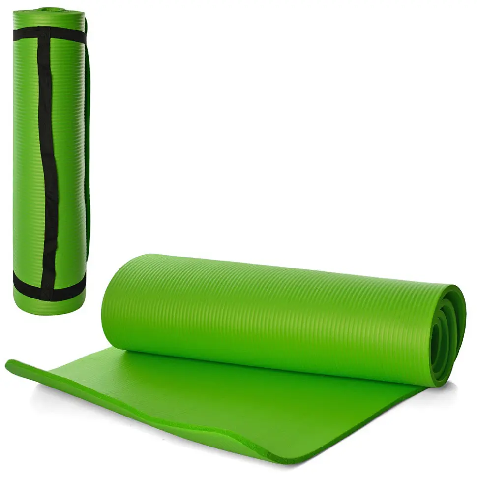 Килимок для йоги/фітнесу добре підійде для занять у залі (у щадному режимі - на вулиці). Не токсичний, не викликає алергічної реакції, практичний у використанні, легко миється. Відмітна особливість цього килимка - його товщина, на ньому буде м'яко займатися. У комплекті до кожного мату поставляється ремінь-стяжка, що полегшує його зберігання і транспортування. Матеріал NBR (спінений каучук) Розмір 183-61см, товщина 10мм