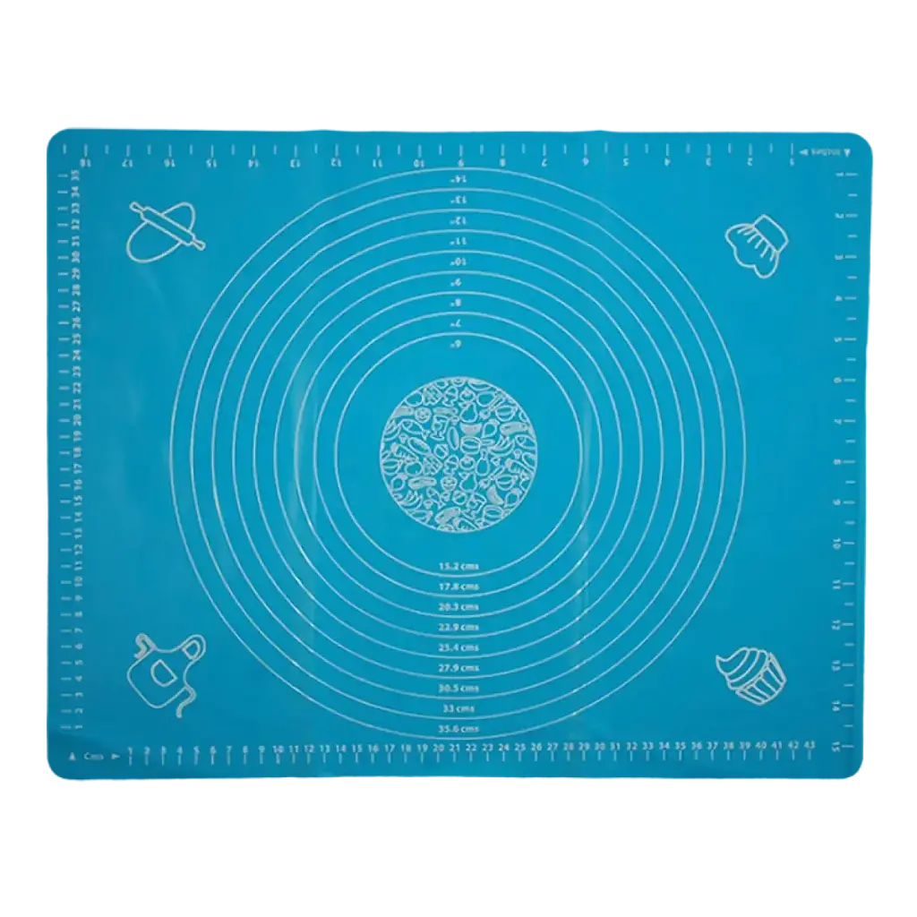Силіконовий килимок із розміткою, призначений для зручного формування, розкачування та подальшого випікання тіста. Не ковзає на столі під час використання, підтримує чистоту робочої поверхні. Розмітка килимка показує довжину, ширину виробу та має 9 варіантів діаметра коржів.