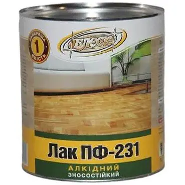 Лак паркетний Блєск ПФ-231 призначений для захисту та декоративної обробки паркетної та дерев'яної підлоги, а також інших виробів з деревини, що експлуатуються усередині приміщень.