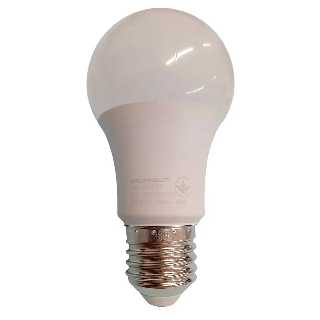 Лампа LED Grunhelm A60-12W-65K-E27 Long-Life R2.0 – це високопродуктивне енергозберігаюче джерело світла у класичній формі «груші» (A60), яке дозволяє значно скоротити витрати на електроенергію, заощаджуючи понад 900 кВт/год протягом усього терміну служби. Завдяки стандартному цоколю E27 вона є універсальним рішенням для більшості побутових та офісних світильників. Виріб не містить ртуті, що гарантує його повну екологічну безпеку.