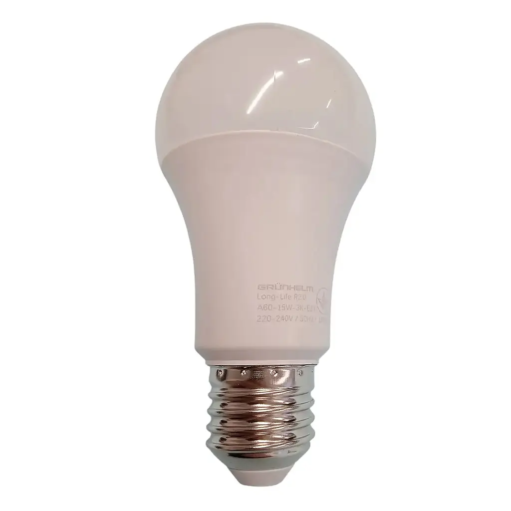 Лампа LED Grunhelm A60-15W-3K-E27 Long-Life R2.0 – це потужне енергоефективне джерело світла у класичній формі «груші» (A60), яке дозволяє заощадити понад 900 кВт/год електроенергії протягом усього терміну своєї служби. Завдяки стандартному цоколю E27 модель є універсальним рішенням для основного освітлення в люстрах, плафонах та торшерах. Виріб не містить шкідливих речовин, зокрема ртуті, що гарантує безпеку для здоров'я та довкілля.