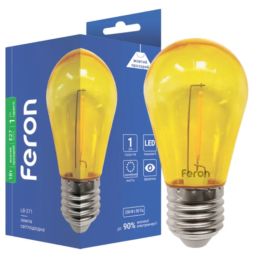 Декоративні лампи типу S14 з прозорими кольоровими колбами Feron LB-371. Лампи призначені для використання в гірляндах белт-лайт та декоративного освітлення у приміщеннях на назовні.