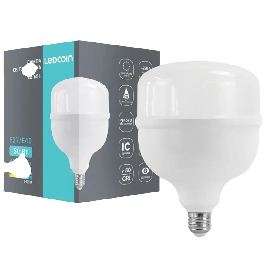 Переваги світлодіодної лампи Ledcoin LB-654 50 Вт 6400K