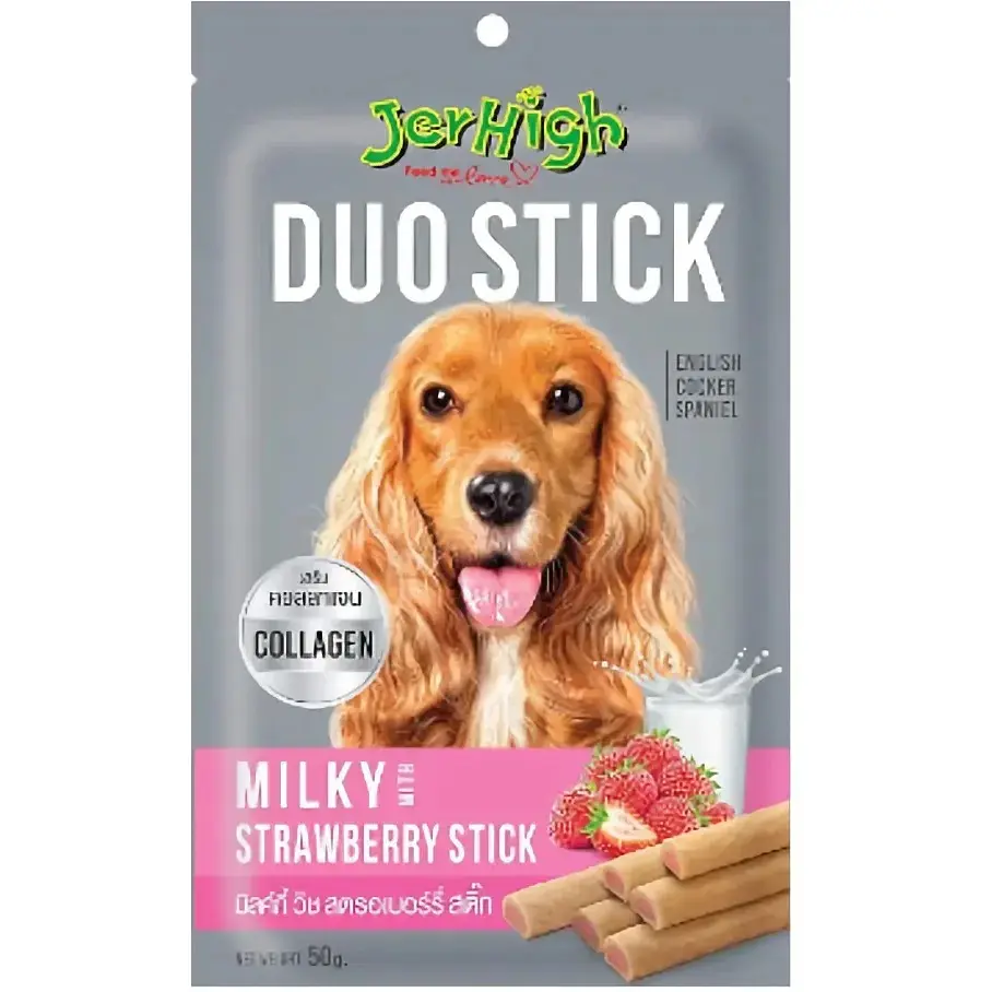 Всі характеристикиПодаруйте своєму собаці справжню насолоду з JerHigh Подвійними паличками зі смаком молока та полуниці! Ці яскраві, ароматні ласощі виготовлені на основі натурального курячого м’яса з додаванням молочних інгредієнтів, фруктового порошку та колагену. Подвійний смак і м’яка текстура не залишать байдужим жодного хвостатого гурмана!