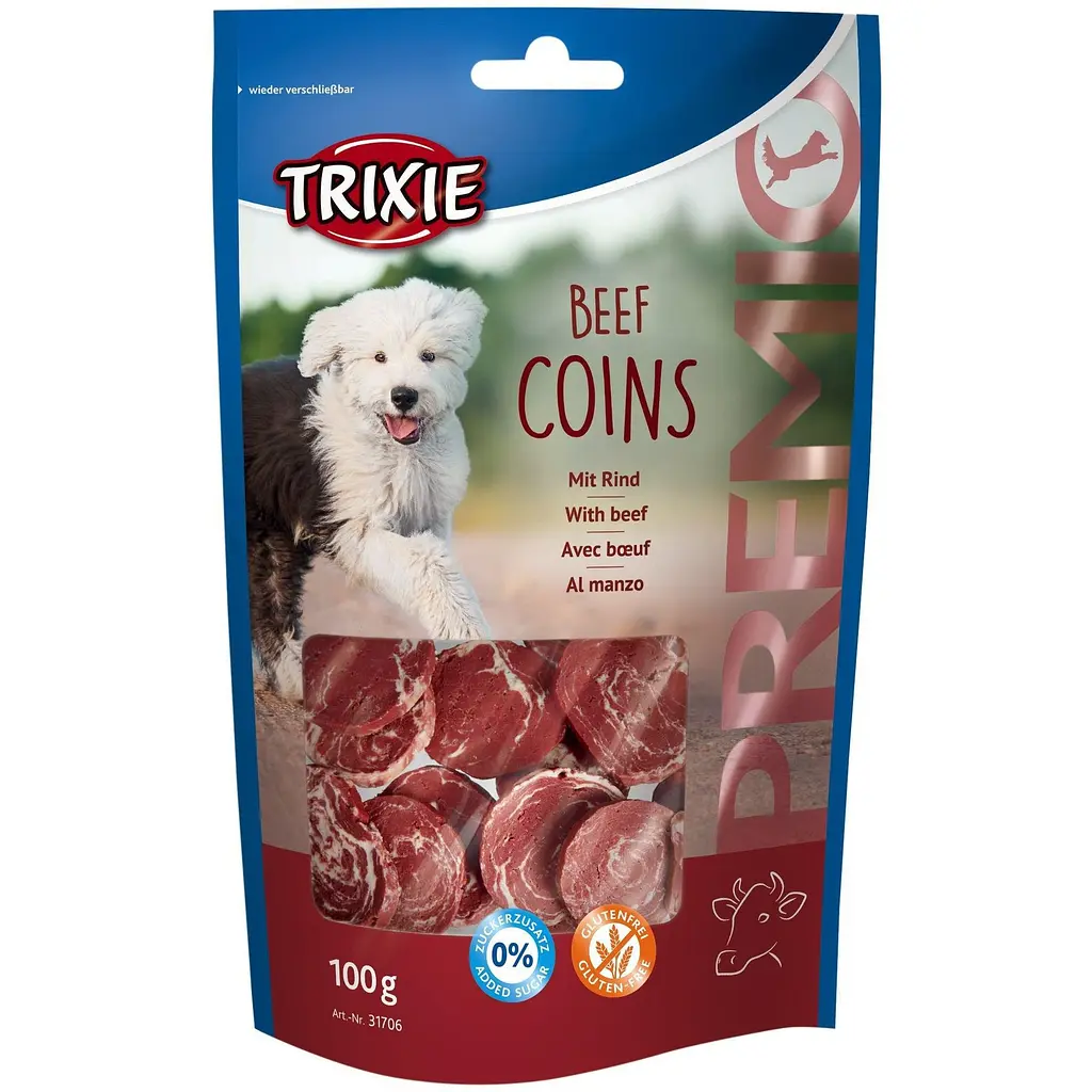 Інгредієнти: яловичина (39%), куряче м'ясо (18%), пшеничне борошно, картопляний крохмаль, гліцерин, соєвий білок, хлорид натрію.