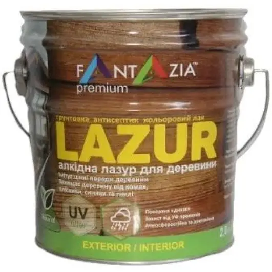 Лазур для дерева Fantazia забезпечує надійний захист деревини від різних негативних зовнішніх впливів та вигідно наголошує на природній текстурі деревини. Стійка до атмосферних впливів та ультрафіолету.
