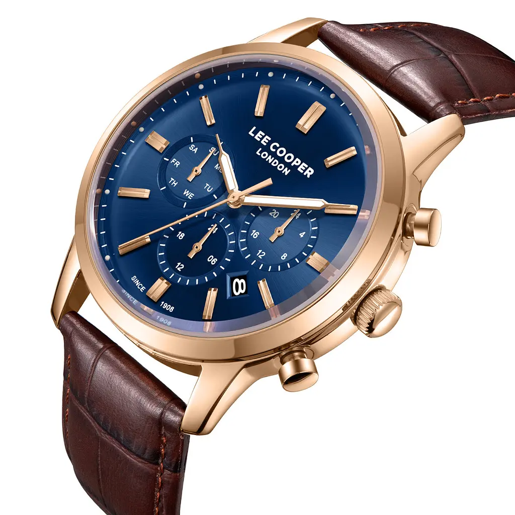 Тип механізму: Quartz, Водостійкість: 3 атм - миті руки, Функції: Показують дату, день тижня, подвійний час, 24-годинний формат часу, Стиль: Класичний, Скло: Мінеральне, Матеріал: Метал, Тип: Чоловічі, Застібка: Класична, Товщина: 11 мм, Форма корпус Додаткові характеристики: Індикація дати, Особливості: Інструкція на російській мові, Вага, г: 73, Розміри, мм: 43х11, Колір корпусу: Золотистий, Формат часу: 12 г, Індикація: Минути, секунди, години, Діаметр: 43 мм, Тип Реферат: Аналоговий ( кришка: Закрита, Характеристики механізму: Miyota (Японія), Гарантія: 12 місяців, Механізм: Кварцовий, Виробник: Lee Cooper, Колір ремінця: Коричневий, Можливість зняти ремінець: Так, По діаметру годин: Середні, Довжина ремінця, см: 25 см (регулюється), Тип: 2 чоловіків, Фабрика збірки: Китай/Японія, Основний колір циферблату: Синій, Індекси, Особливості циферблату: Центральна секундна стрілка, За країною механізму: З японським механізмом