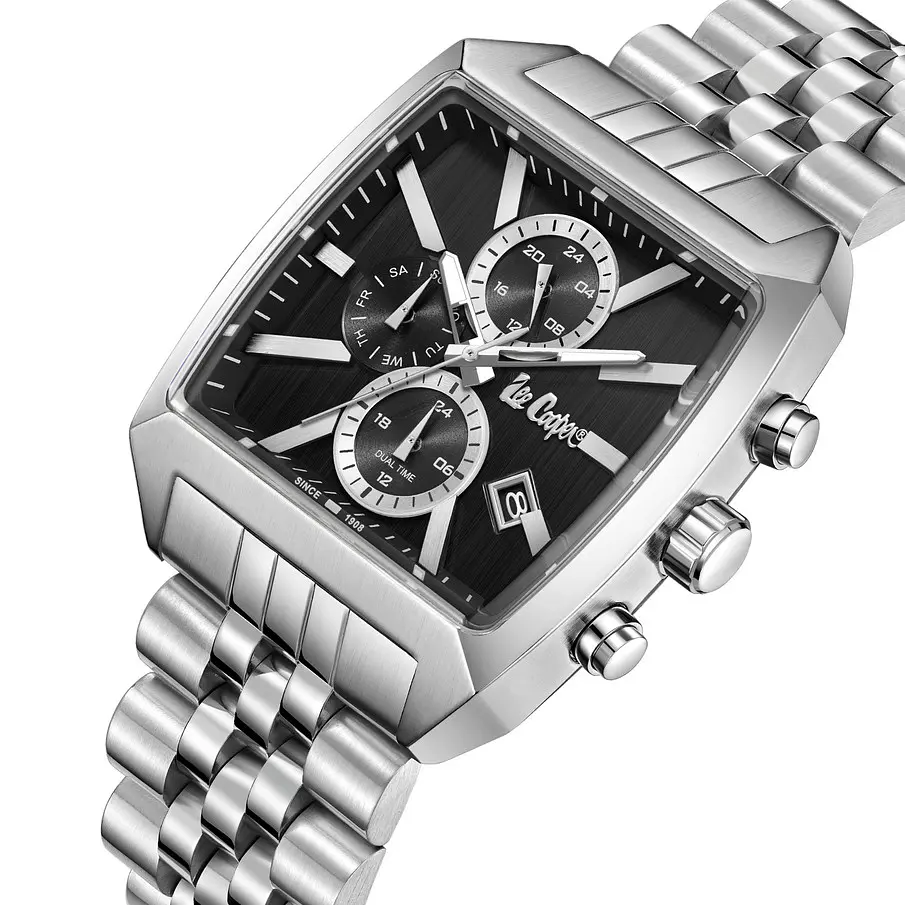 Тип механізму: Quartz, Водостійкість: 3 атм - миті руки, Функції: Показують дату, день тижня, подвійний час, 24-годинний формат часу, Стиль: Класичний, Скло: Мінеральне, Матеріал: Метал, Тип: Чоловічі, Застібка: Дворівнева, Товщина: 11 мм, Сталевий, Додаткові характеристики: Індикація дати, дня тижня, Особливості: Інструкція на російській мові, Вага, г: 73, Розміри, мм: 48х40x11, Колір корпусу: Сріблястий, Формат часу: 12 г, Індикація: Минути, секунди, години, Тип: 48 Ремінець/браслет: Браслет, Задня кришка: Закрита, Характеристики механізму: Miyota (Японія), Гарантія: 12 місяців, Механізм: Кварцовий, Виробник: Lee Cooper, Колір ремінця: Сріблястий, Можливість зняти ремінець: Так, По діаметру годин: Великі, Довжина Індекси, Для чоловіків: Для чоловіків, Матеріал корпусу: Сталь, Фабрика зборки: Китай/Японія, Основний колір циферблата: Чорний, Індекси, Особливості циферблата: Центральна секундна стрілка, За країною механізму: З японським механізмом