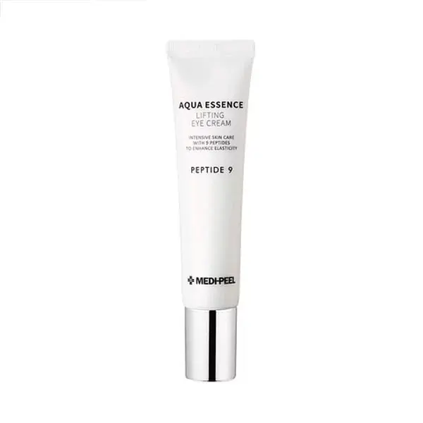 Medi-Peel Peptide 9 Aqua Essence Lifting Eye Cream - це розкішний і сучасний крем для повік. Він допомагає омолоджувати та живити ніжну шкіру навколо очей. Містить потужну суміш пептидів, яка допомагає зменшити видимість тонких ліній, зморшок та інших ознак старіння. Крім пептидів, крем для повік містить цілу низку зволожувальних і живильних інгредієнтів, як-от гіалуронова кислота, гліцерин і олія ши. Ці інгредієнти працюють разом, щоб допомогти зволожити і підтягнути шкіру, а також підвищити її еластичність і пружність.