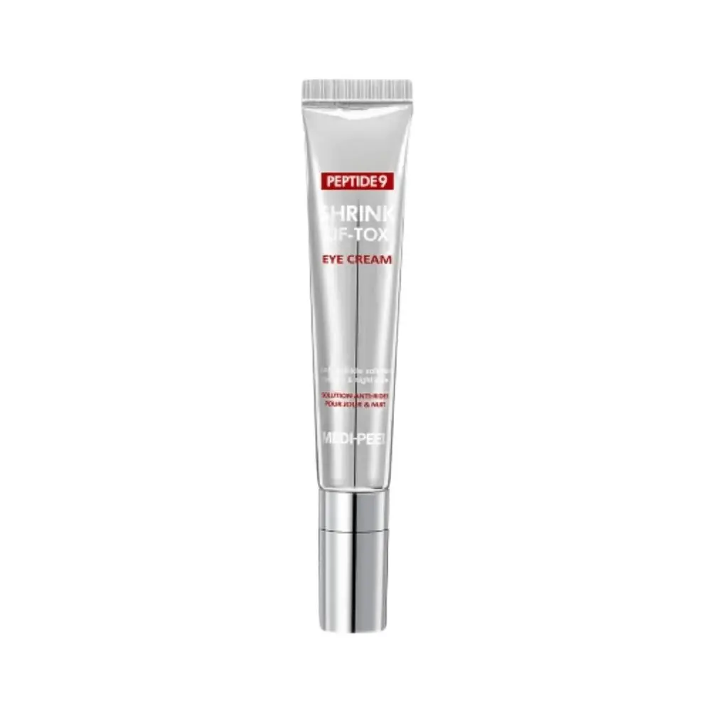 Зміцнюючий ліфтинг крем для шкіри навколо очей MEDI-PEEL Peptide 9 Shrink Lif-Tox Eye Cream має виражену ліфтинг дію, відновлює внутрішню еластичність шкіри, розгладжує зморшки, попереджає утворення заломів. Інноваційний збалансований склад активізує синтез структурних білків, зміцнює та підтягує шкірну матрицю. Металевий аплікатор має охолоджувальну дію, сприяєзняттю набряклості. Легка текстура крему добре вбирається, не залишає липкості, відчуття стягнутості та дискомфорту.