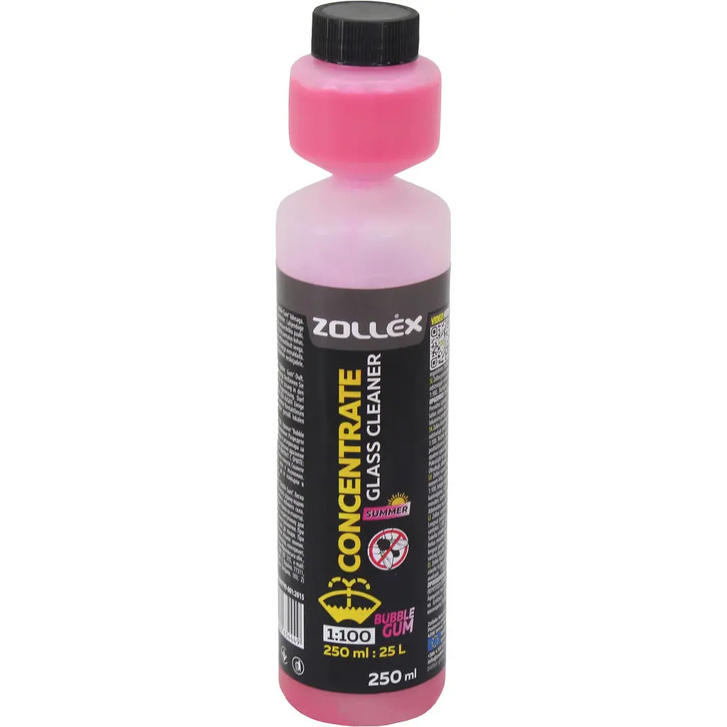 Омивач скла Zollex Bubble Gum – це літній концентрат для ефективного очищення автомобільного скла та фар з приємним ароматом жувальної гумки. Засіб швидко видаляє сліди комах, масляні плями, дорожній пил, силікон, деревну смолу та нафтопродукти, не залишаючи розводів чи плям для ідеальної видимості під час руху.