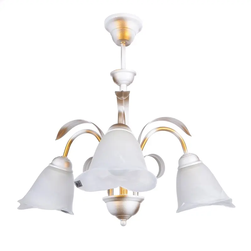 Хто сказав, що радянським люстрам пора на звалище? Ми хочемо посперечатися і готові запропонувати вдосконалену модель "радянської" люстри - підвісну люстру від ТМ Brille BKL-468S/3 E27 WH. Дійсно дизайн даного освітлювального приладу нагадує дизайн світильників радянських часів. Але, як то кажуть, класика вічна, тому люстра такого стилю буде завжди в тренді. Польські майстри виготовили її з високоякісного металевого сплаву, стійкого до корозії, а також скла. До металевого фігурного каркаса прикріплено три скляних матових плафони білого кольору. Плафони виконані у формі квіткових бутонів. Скло у них товсте, гладеньке, робить світло м'яким, злегка приглушеним. Крім плафонів на каркасі знаходяться металеві елементи, що імітують форму листя. Дизайн люстри нагадує квітковий букет. Освітлювальний прилад розрахований на три лампочки з цоколем Е27. Така витончена модель прикрасить собою вітальню, спальню як міської квартири, так і заміського будинку.