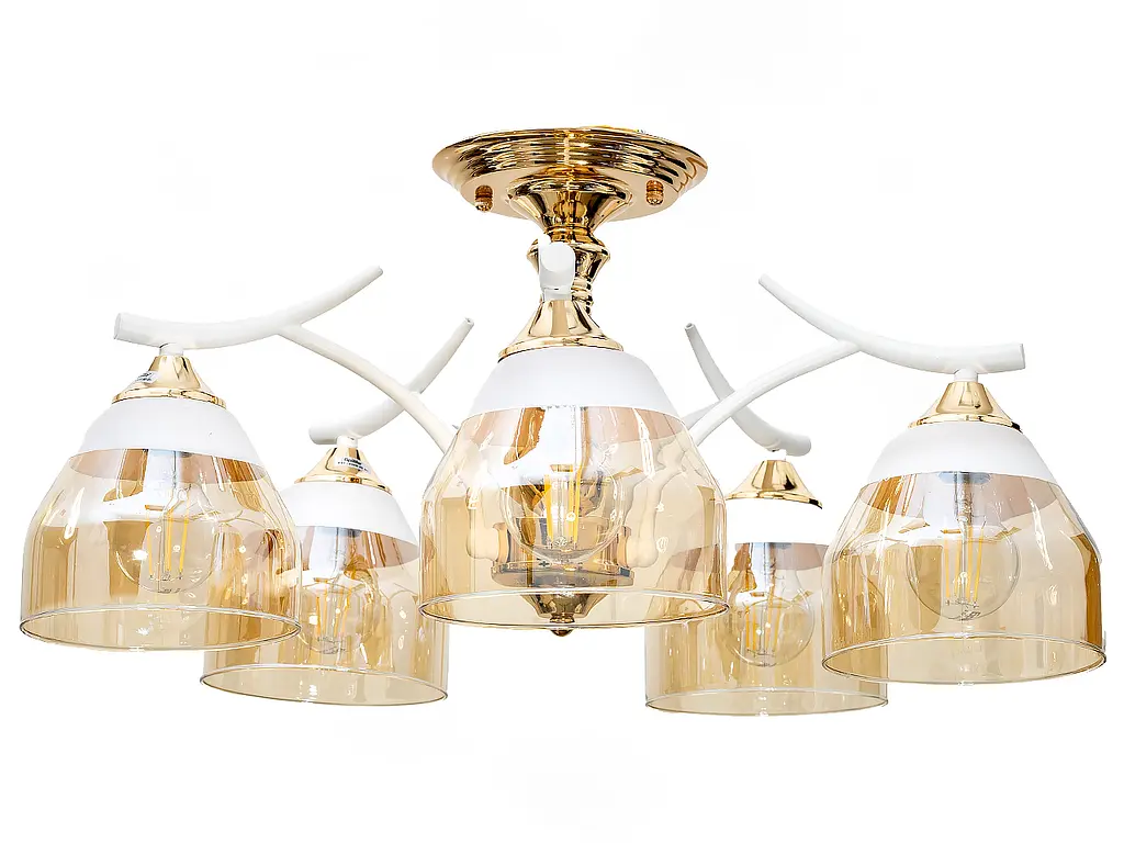 Люстра LK-731S/3 E27 WH+FG є елегантним поєднанням золотисто-білих тонацій, які додадуть вишуканості та тепла у ваш інтер'єр. Ця класична люстра включає п'ять золотисто-прозорих плафонів, встановлених на витончених білих ніжках, що кріпляться до золотистої основи. Структурна гармонія між золотистими та білими елементами створює витончений зовнішній вигляд, який ідеально доповнить вітальню, кабінет чи хол. napriam_svitla вниз забезпечує ефективне освітлення, надаючи кімнаті затишок та атмосферу. Ця люстра також відрізняється стильною золотисто-чорною гамою, яка надає їй особливого характеру. Вона надає можливість використання різних джерел світла, таких як світлодіодні лампи, енергозберігаючі лампочки або розжарювання, що робить її універсальним вибором. Люстра LK-731S/3 E27 WH+FG - це не просто джерело світла, але й стильний елемент, який додасть до вашої оселі нотку розкоші та традиційної елегантності.