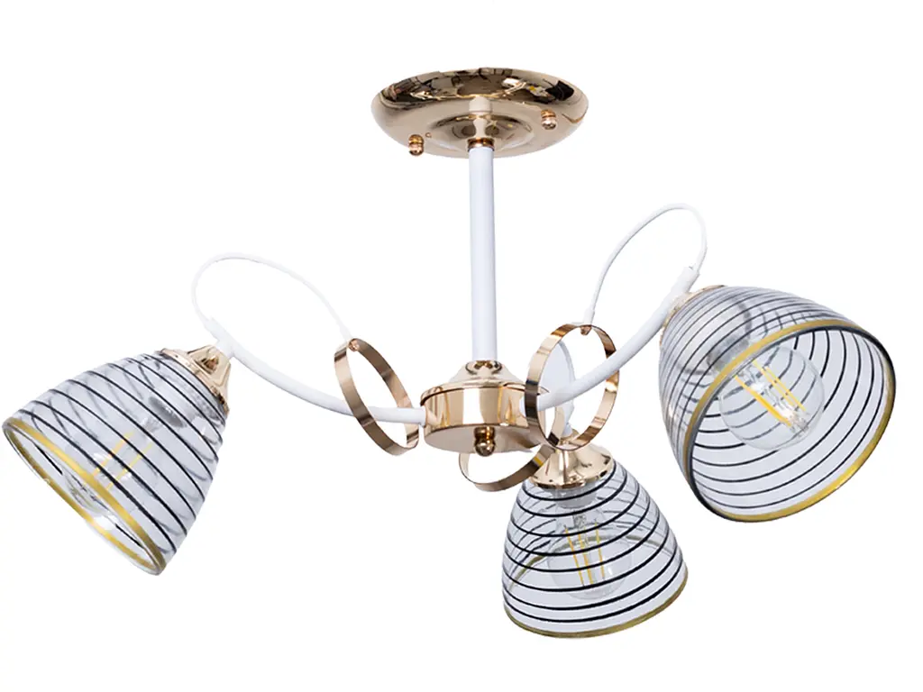Люстра стельова LK-728S/3 E27 WH+FG - це вишукане поєднання елегантності та функціональності, створене для тих, хто цінує класичний стиль в інтер'єрі. Конструкція люстри виконана в білому кольорі із золотими елементами. Також присутні декоративні елементи на корпусі. На трьох фігурних тримачах розташовані скляні плафони. Вони купольної форми, затемнені сірим кольором з темними смужками та золотим обрамленням. Ця приголомшлива люстра має п'ять ламп з цоколем Е27 і максимальною потужністю 60 Вт. Вона надає можливість використання різних джерел світла, таких як світлодіодні лампи, енергозберігаючі лампочки або розжарювання, що робить її універсальним вибором. Ця люстра стане не тільки джерелом світла, але й стильним акцентом у вашому інтер'єрі, підкреслюючи ваш бездоганний смак та створюючи затишну атмосферу у будь-якому приміщенні.