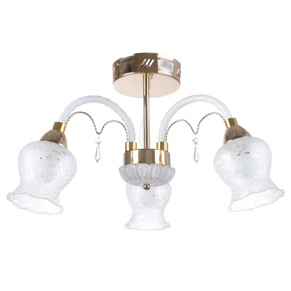 Виготовлення люстр в класичному стилі почалося ще в XVI столітті, коли при оформленні залів будинків і палаців все частіше починають використовувати елементи розкоші. Люстра LK-509S/3 E14+LED, виконана в класичному стилі, додасть вашій кімнаті святковий і помпезний вигляд. Як матеріал для виготовлення цієї люстри використали метал і скло. Поєднання цих матеріалів робить люстру не тільки красивою, але і довговічною. Люстра має три скляні плафони, декоровані ніжним матовим візерунком білого кольору. Металевий каркас золотистого кольору прикрашений скляними підвісками. Для роботи люстри необхідно три лампочки з цоколем Е27 потужністю 40 Вт. Люстра обладнана додатковим світлодіодним підсвічуванням, яке включається разом з основним освітленням. Світлодіоди вбудовані в ріжки люстри, на яких кріпляться плафони.