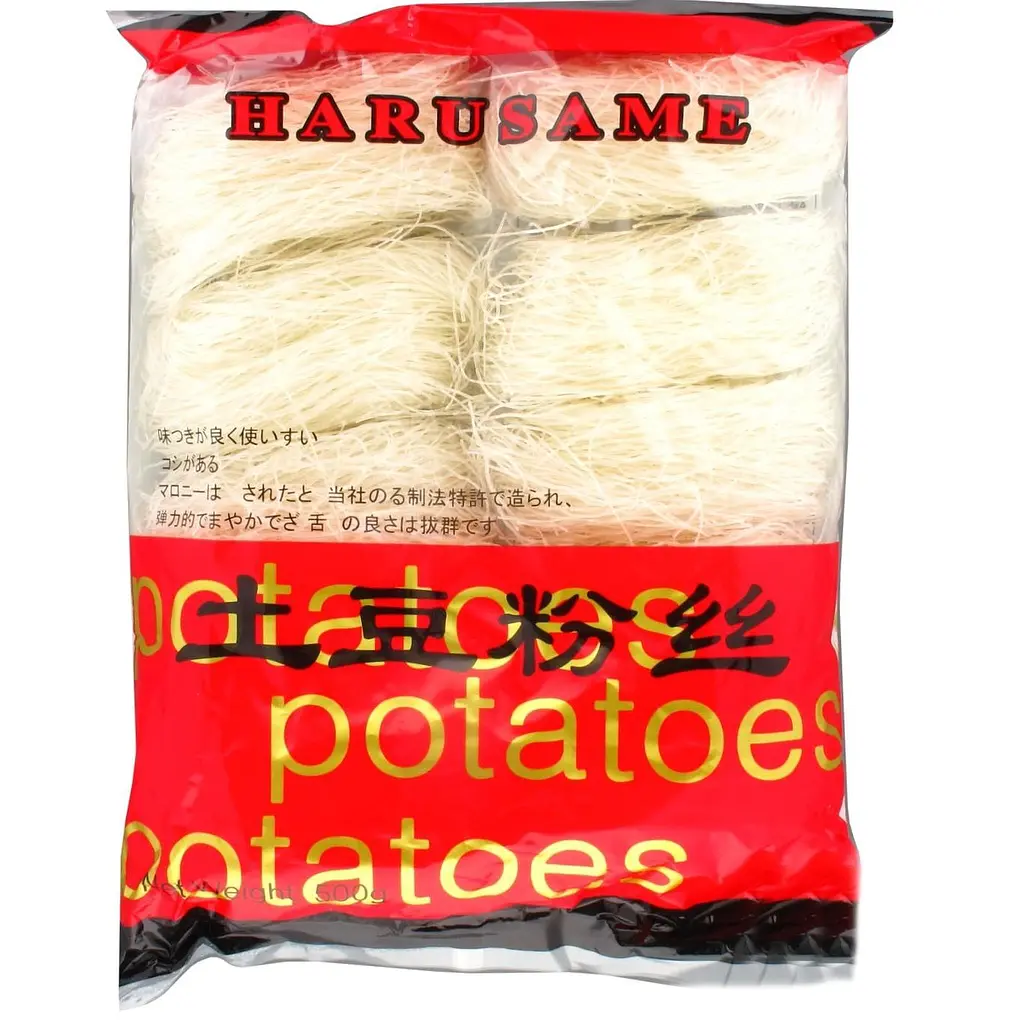 Харусаме - локшина з картопляного крохмалю або картопляна локшина. Універсальний продукт для супів, салатів, інших страв, для обсмажування. Низькокалорійна, без глютену.