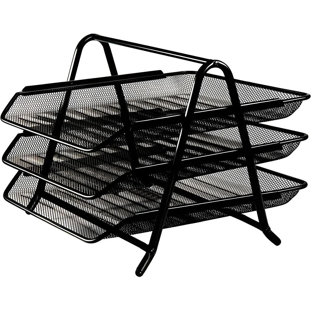 Лоток виготовлений із металевої сітки, складається з трьох елементів і має відкриту скошену передню частину, що дозволяє виймати необхідні документи швидко та легко. Покриття - фарба, стійка до механічних впливів та ультрафіолету (не дряпається, не витирається, не вигорає). Згладжені шви на виробі забезпечують безпеку у використанні.