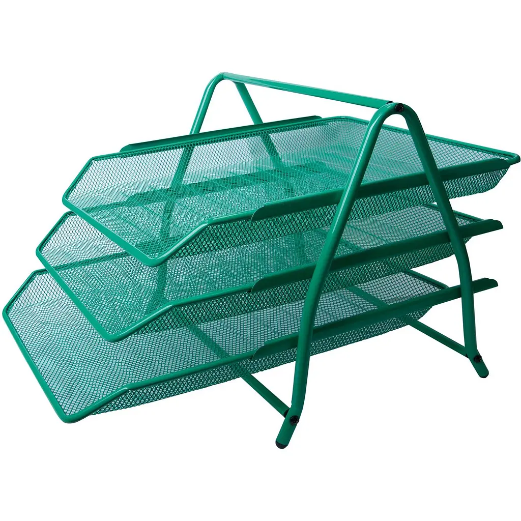 Лоток виготовлений із металевої сітки, складається з трьох елементів і має відкриту скошену передню частину, що дозволяє виймати необхідні документи швидко та легко. Покриття - фарба, стійка до механічних впливів та ультрафіолету (не дряпається, не витирається, не вигорає). Згладжені шви на виробі забезпечують безпеку у використанні.