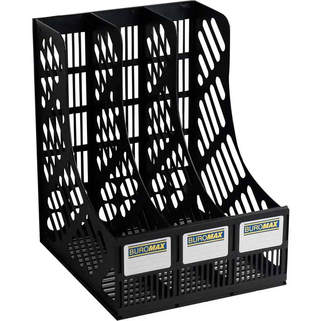 Лоток для паперів Buromax призначений для зберігання в вертикальному положенні документів, каталогів, журналів, папок і інших документів формату А4. Виготовлений з міцного поліпропілену. Завдяки лотку, документація зберігається в одному місці, і на робочому столі завжди ідеальний порядок. Лоток складається з 3-х відділень.