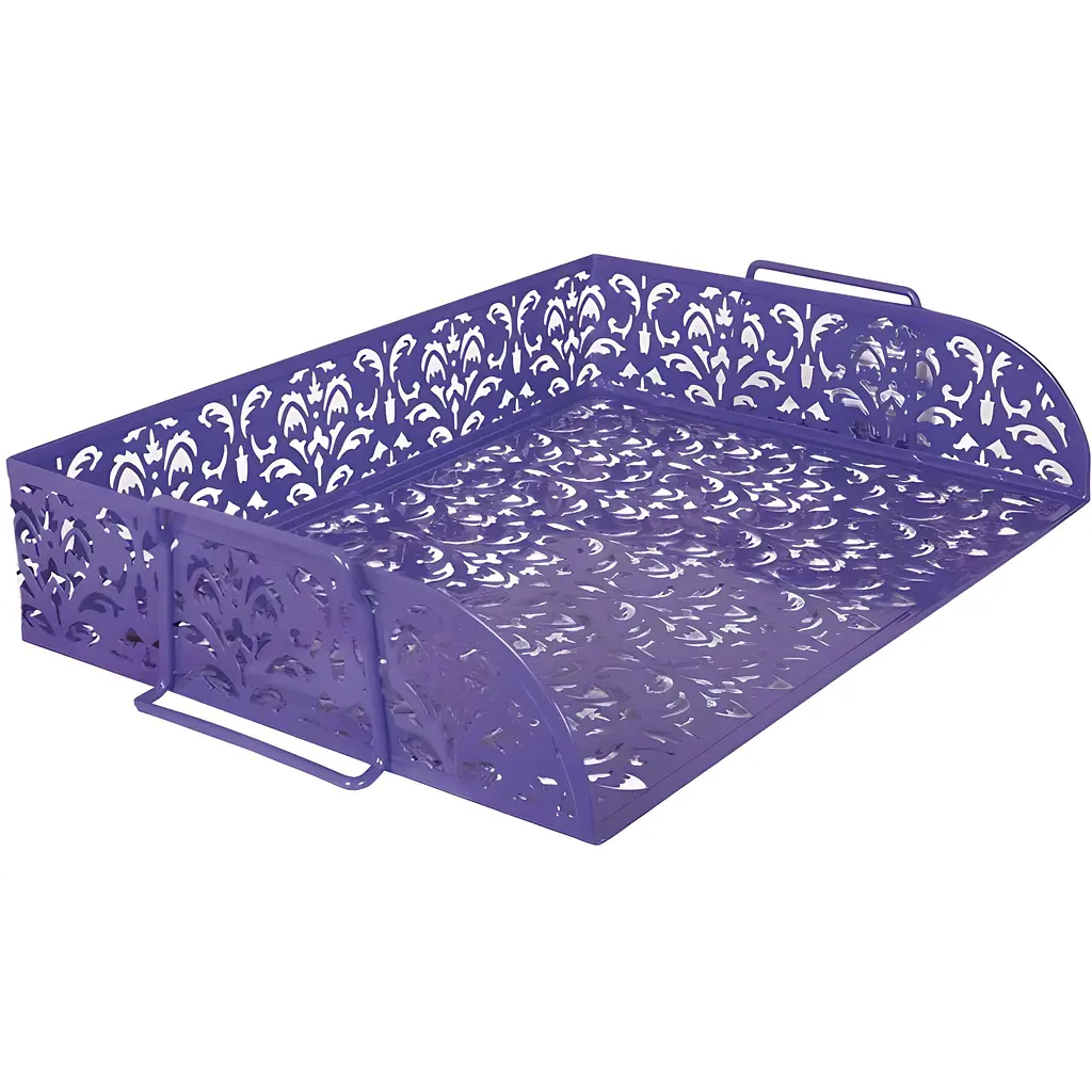 Лоток виготовлений із металу з вирізаним візерунком в стилі Barocco і має відкриту передню частину, що дозволяє виймати необхідні папери швидко та легко. Для організації робочої зони можлива вертикальна надбудова лотків і їх фіксація завдяки металевим ручкам. Покриття - фарба, стійка до механічних впливів та ультрафіолету (не дряпається, не витирається, не вигорає). Згладжені шви на виробі забезпечують безпеку у використанні.