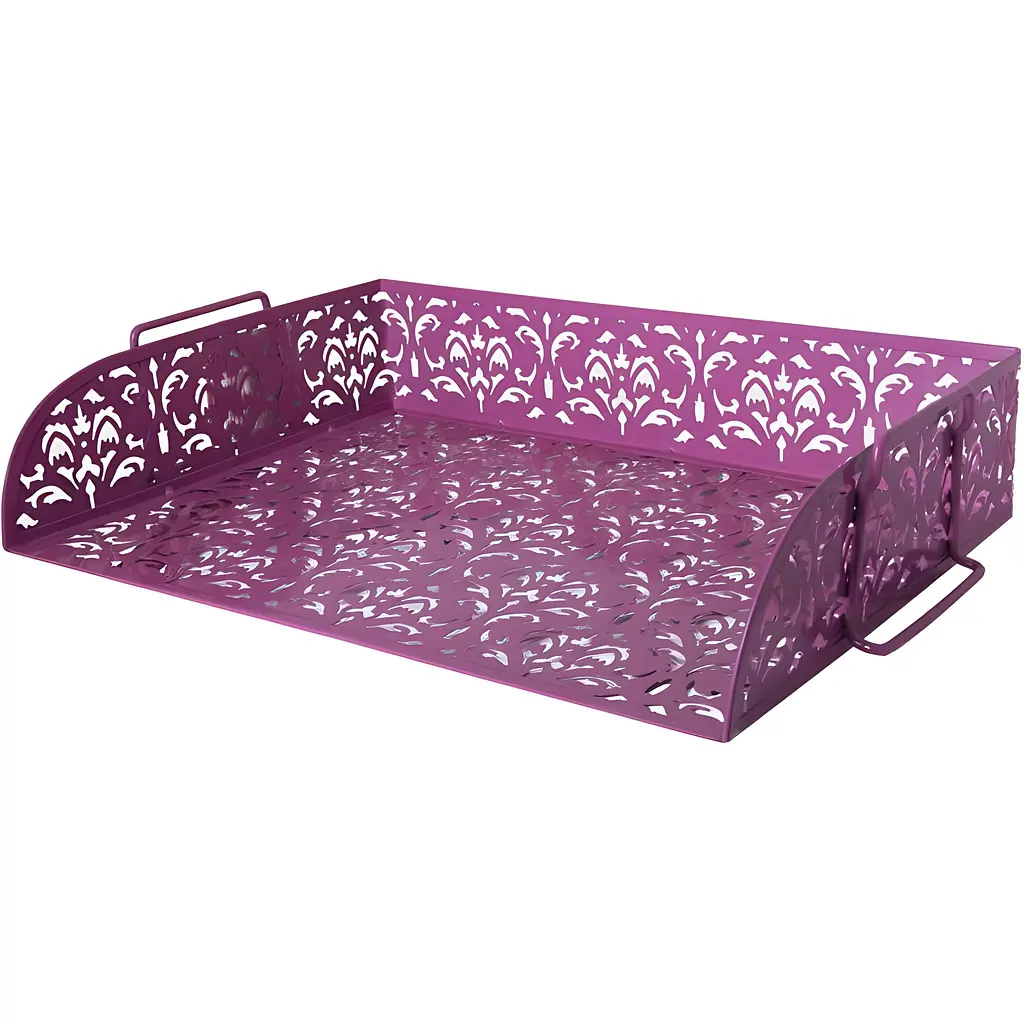 Лоток виготовлений із металу з вирізаним візерунком в стилі Barocco і має відкриту передню частину, що дозволяє виймати необхідні папери швидко та легко. Для організації робочої зони можлива вертикальна надбудова лотків і їх фіксація завдяки металевим ручкам. Покриття - фарба, стійка до механічних впливів та ультрафіолету (не дряпається, не витирається, не вигорає). Згладжені шви на виробі забезпечують безпеку у використанні.