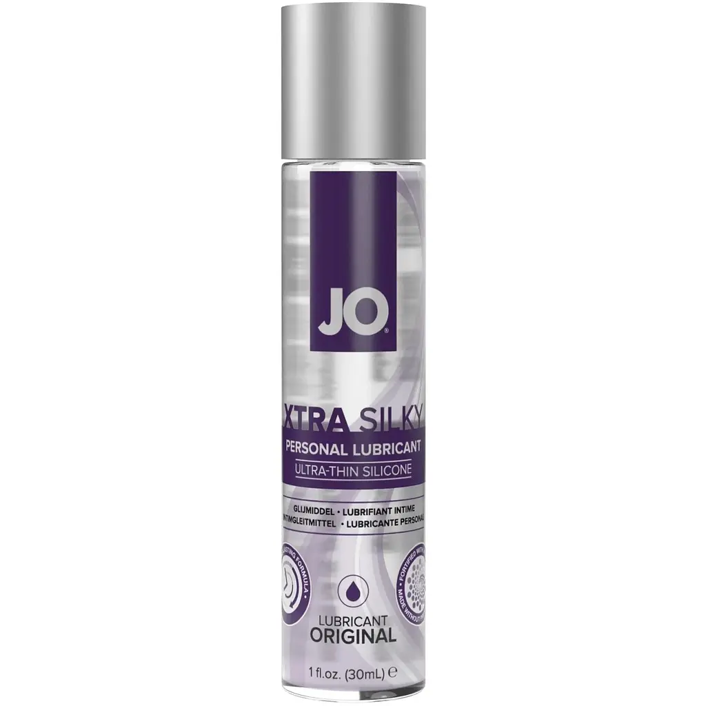 JO Xtra Silky Personal Lubricant - високоякісний зволожувальний лубрикант на силіконовій основі, збагачений вітаміном Е. Лубрикант JO Xtra Silky Personal Lubricant - це зволожувальний засіб, який ідеально підходить як для будь-якого виду сексу з партнером, так і для інтимної стимуляції. Розроблено лубрикант на силіконовій основі, що дає змогу Вам насолоджуватися не тільки тривалим зволожувальним ефектом, а й приємною, м'якою та реалістичною консистенцією засобу. Змазка повністю прозора, ніжна і приємна на дотик. Вона чудово доповнює природне змащення і додає приємної вологи та ідеального ковзання. Завдяки силіконовій основі і зволоження, і ковзання триматиметься досить довго, а тому Ви сповна зможете насолодитися комфортним сексом і стимуляцією. До того ж, використовувати змазку можна навіть у ванні або душі, оскільки вона не втрачає свої властивості у воді. З JO Xtra Silky Personal Lubricant Ваш секс та інтимна стимуляція стануть набагато яскравішими, комфортнішими і приємнішими. З лубрікантом Ви позбудетеся неприємної сухості інтимних зон і болісного тертя під час фрикцій. JO Xtra Silky Personal Lubricant прекрасно зволожить, пом'якшить ніжну шкіру і подарує неймовірне тривале ковзання. Виготовлений лубрикант виключно з безпечних та нешкідливих для здоров'я інгредієнтів. До складу лубриканту входить високоякісний силікон та вітамін Е, який забезпечує належне та приємне зволоження та турботу про шкіру. Ідеально чистий склад лубриканта не шкодить здоров'ю та не викликає алергію. змазка не має кольору, запаху та смаку. Сумісна з латексними виробами. Лубрикант на силіконовій основі краще не використовувати із секс-іграшками з кібершкіри та силікону. Об'єм: 30 мл