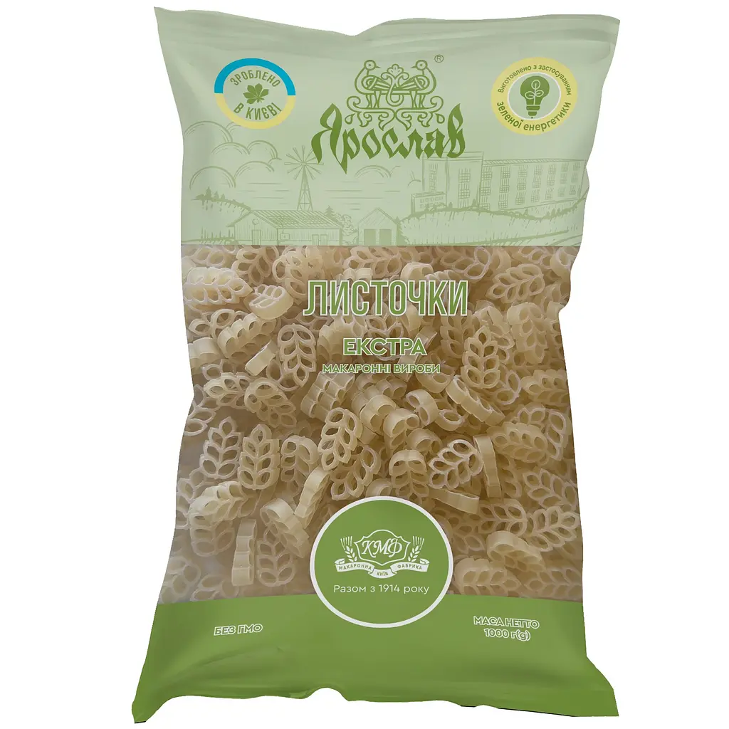 Макаронні вироби Ярослав листочки - смачний макарон, який має цікаву форму. Листочки не розварюються при варінні, тримають форму, не злипаються. Дітям дуже подобається. Добавити побільше вершкового масла і смачного!