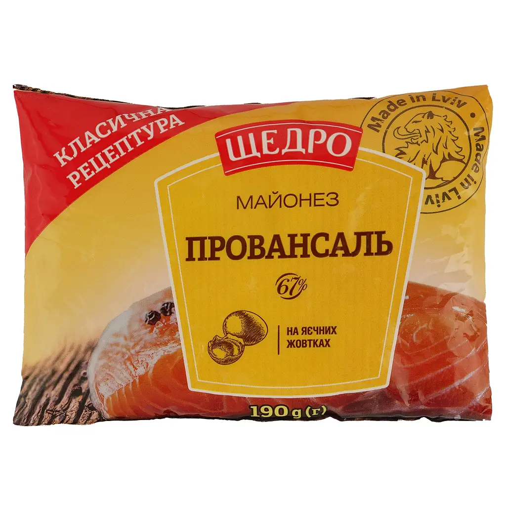 До кінця акції 12 днівМайонез Щедро Провансаль 67% виготовлений за класичною рецептурою з добірної олії та натуральних яєчних жовтків.