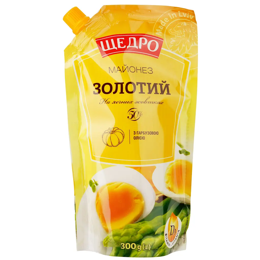 До кінця акції 12 днівМайонез Щедро Золотий має м'який і легкий смак. Класична рецептура з використанням натуральних яєчних жовтків гармонійно поєднується із невисокою жирністю. Справжня знахідка для тих, хто стежить за збалансованістю свого раціону.