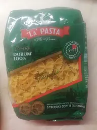 Макаронні вироби La Pasta - наші найулюбленіші. Виготовлені з твердих сортів пшениці, що не дає їм розлазитись під час варіння. Макарони у формі бантиків гарно виглядають на тарілці. І дорослі, й діти в нашій родині дуже їх люблять.