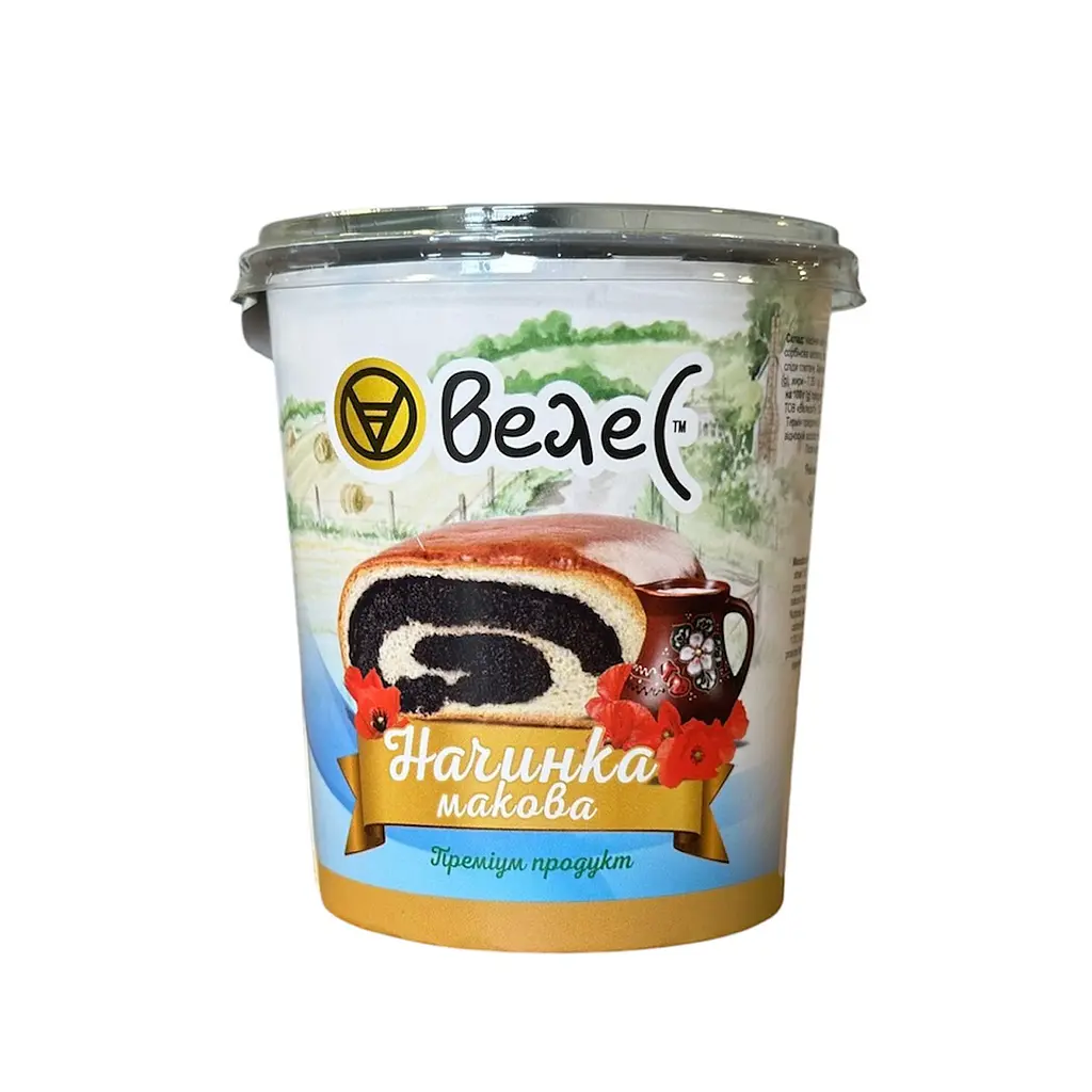 Макова начинка Велес 400 г - це готова до використання начинка від бренду Велес, призначена для випічки, доступна для покупки в Україні. Виготовлена з мелених макових зерен, цукру та натуральних інгредієнтів, вона має насичений смак і аромат, ідеально підходить для рулетів, пиріжків та інших десертів. Вага 400 г зручна для невеликих порцій випічки.