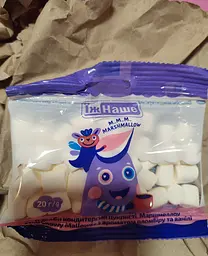 придбав папечку маршмелоу. Пачечка 20 грамова. Кусочки маршмелоу малесенькі і дрібнесенькі. дуже смачно смакують. Купили з доцею і наввипередки їли по одному ). дуже зручна упаковочка. Можна і до школи, можна і на різні секції в якості перекусу. Маршмелоу смачний з ароматом пломбіру та ванілі. Склад маршмелоу - патока крохмальна, крохмаль кукурудзяний. одним словом смачний і дуже рекомендую для покупки.