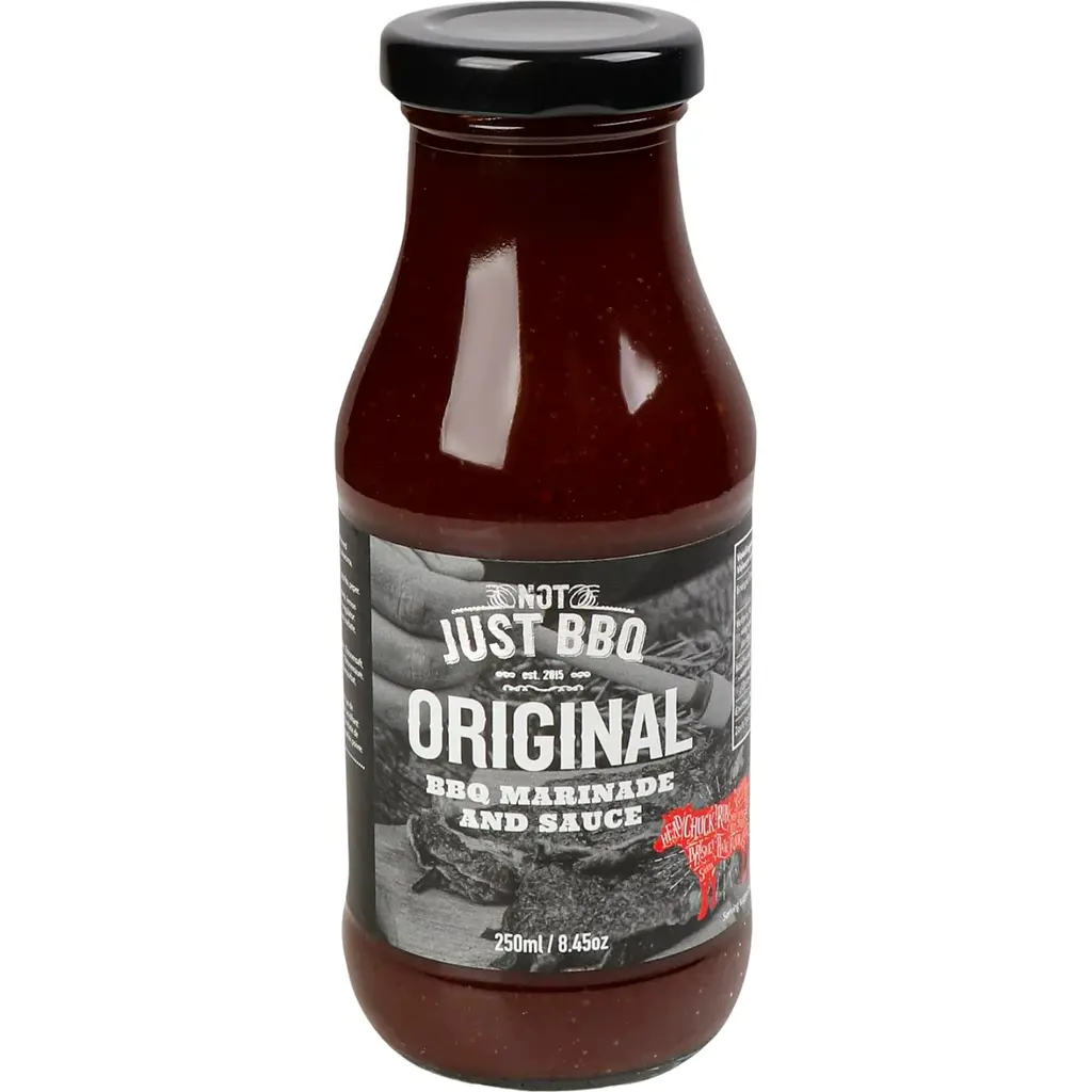Маринад і соус Not Just BBQ Original - класичний соус барбекю з солодким і димним смаком. Цей оригінальний аромат є найм'якшим в асортименті і його можна використовувати абсолютно для всього. Це надає вашим стравам тонкий смак барбекю без шкоди для інтенсивності. Соус поставляється в зручній скляній пляшці з широким отвором для зручності розливу.