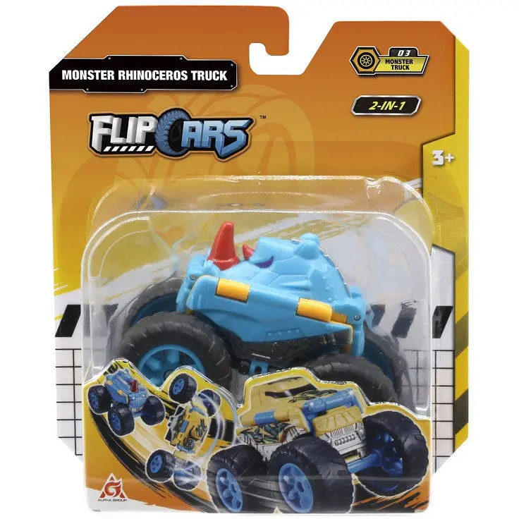 Трансформер Flip Cars 2 у 1 Монстр-трак Носоріг. Запаморочливі та захопливі гонки на монстр-траку! Який кузов вибрати? Тварини чи автомобіля? А якщо два в одному? Пориньте у світ механіки та транспорту! Дивовижна колекція Flip Cars принесе вам удвічі більше задоволення! Ці унікальні машинки можуть трансформуватися на автомобіль іншого типу! Достатньо кількох рухів і машина змінює вигляд. Збери їх усі та дозволь собі поринути у кілометрову пригоду!