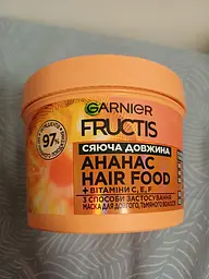 Маска Garnier Fructis Superfood Ананас Сяюча довжина має приємний фруктовий аромат і легку текстуру, яка добре розподіляється по волоссю. Вона помітно пом’якшує та зволожує довге волосся, надаючи йому блиску і здорового вигляду. Після використання локони стають більш гладкими та слухняними, без відчуття обтяження.