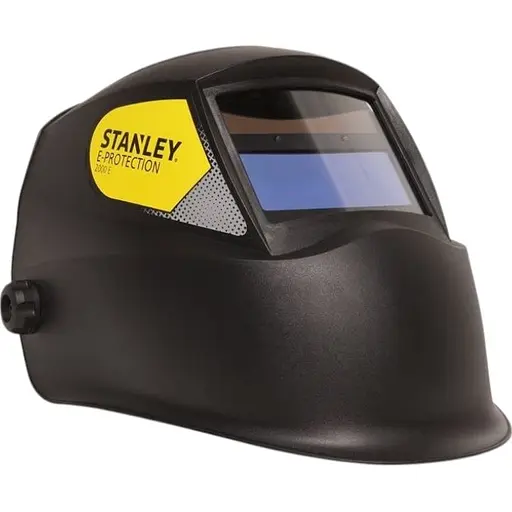 Маска зварника Stanley підходить для методу зварювання MMA, MIG, TIG. Має функцію заряджання від сонячної енергії. Оснащена регулюванням світлочутливості.