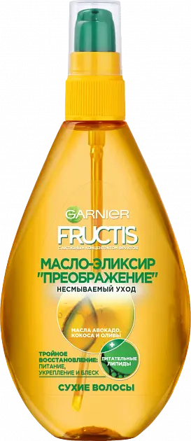 Масло-еліксир для волосся Garnier (Гарньер) Fructis створено для інтенсивного живлення дуже сухого і пошкодженого волосся.
